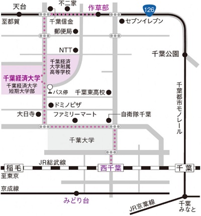 ※JR西千葉駅から徒歩約13分、千葉都市モノレール作草部駅から徒歩約5分。