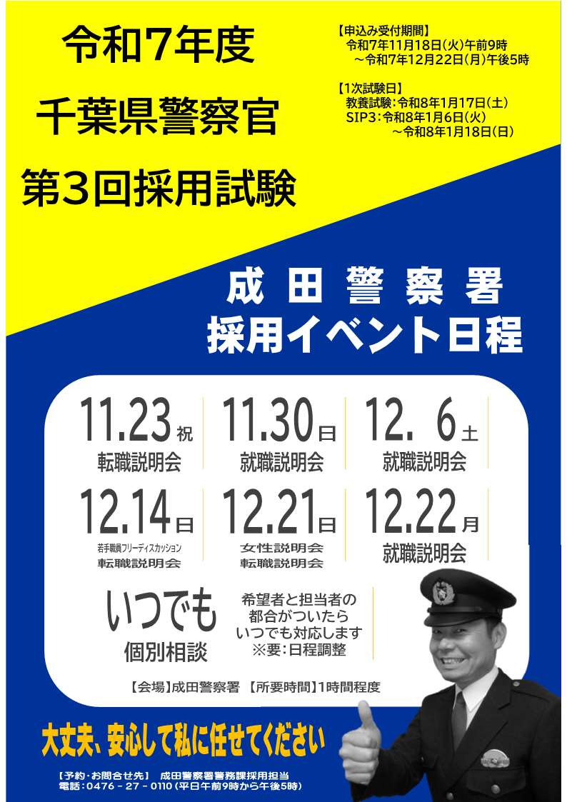 - 令和7年度第3回千葉県警察官採用試験に向けて就職説明会・施設見学会を開催します。