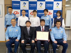 ~逮捕に協力した功労~逮捕協力者の男性に成田警察署平賀署長から感謝状を贈呈しました。