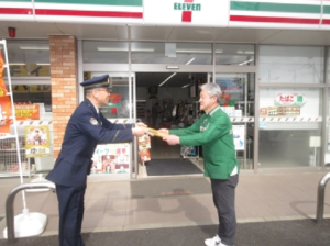 岡﨑署長が「犯罪抑止、交通事故防止への広報活動にご協力していただきありがとうございます。引き続き、警察活動へのご協力をお願いします。」と感謝の意を伝えると、鈴木さんらは「ありがとうございます。今後も、犯罪抑止、交通事故防止に協力します。」などと感想を述べられました。