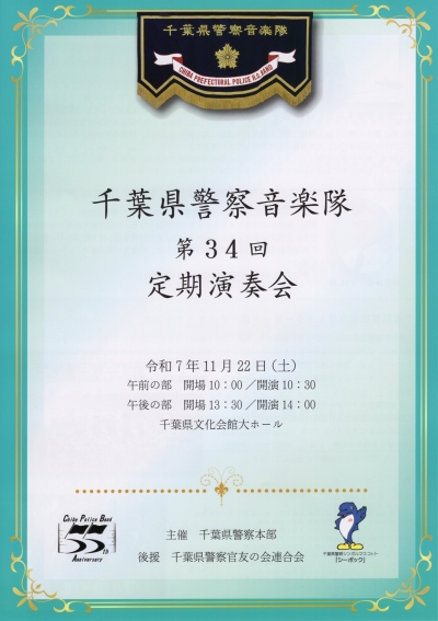 令和7年11月22日(土曜)、千葉県文化会館大ホールにおいて「千葉県警察音楽隊第34回定期演奏会」を開催しました。
