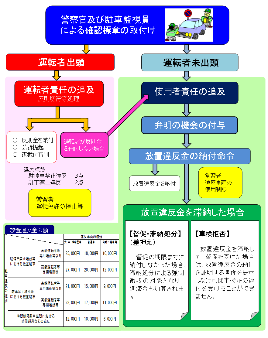 ・ 運転者が交通反則切符処理を受けていても、反則金の納付が確認できない場合は、車両使用者に対して放置違反金の納付手続きを進めることになります。