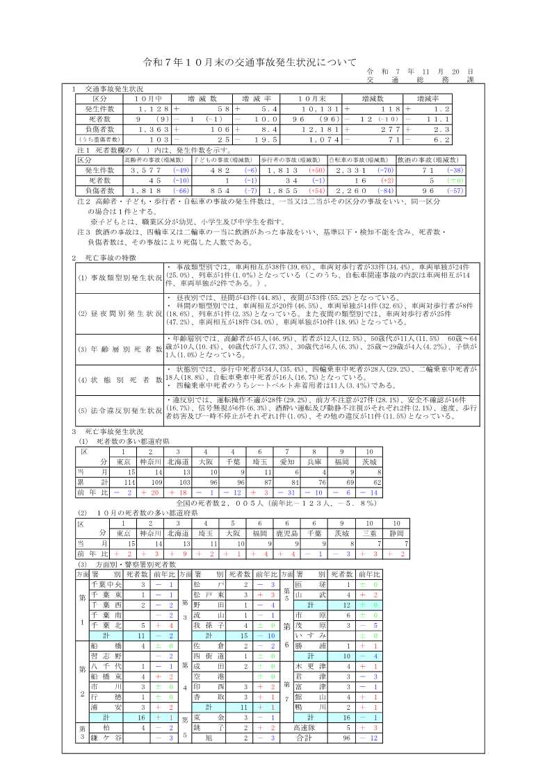 ・ 令和7年10月末現在の交通事故発生状況(PDF形式:504KB)