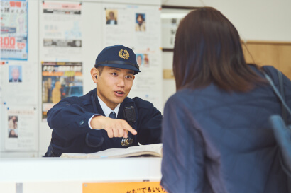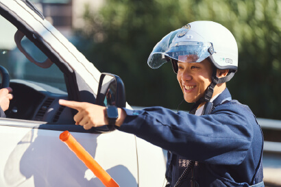 事件等の発生状況に合わせてパトロールをしながら、職務質問を実施します。