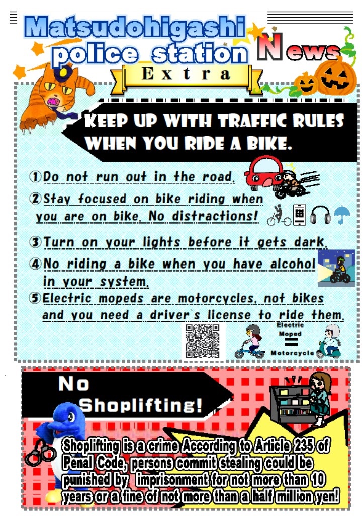 外国人の皆様へ★交通ルール&万引きについて★(Matsudohigashi police station News)