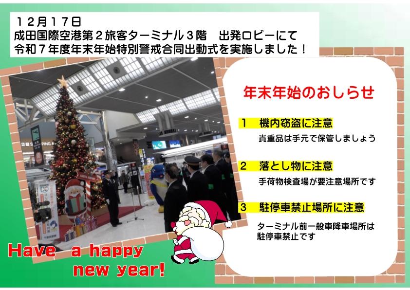 年末年始特別警戒合同出動式・年末年始のおしらせ