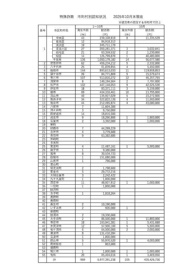 | 千葉県警察本部 生活安全総務課 電話番号:043-201-0110 (警察本部代表) |